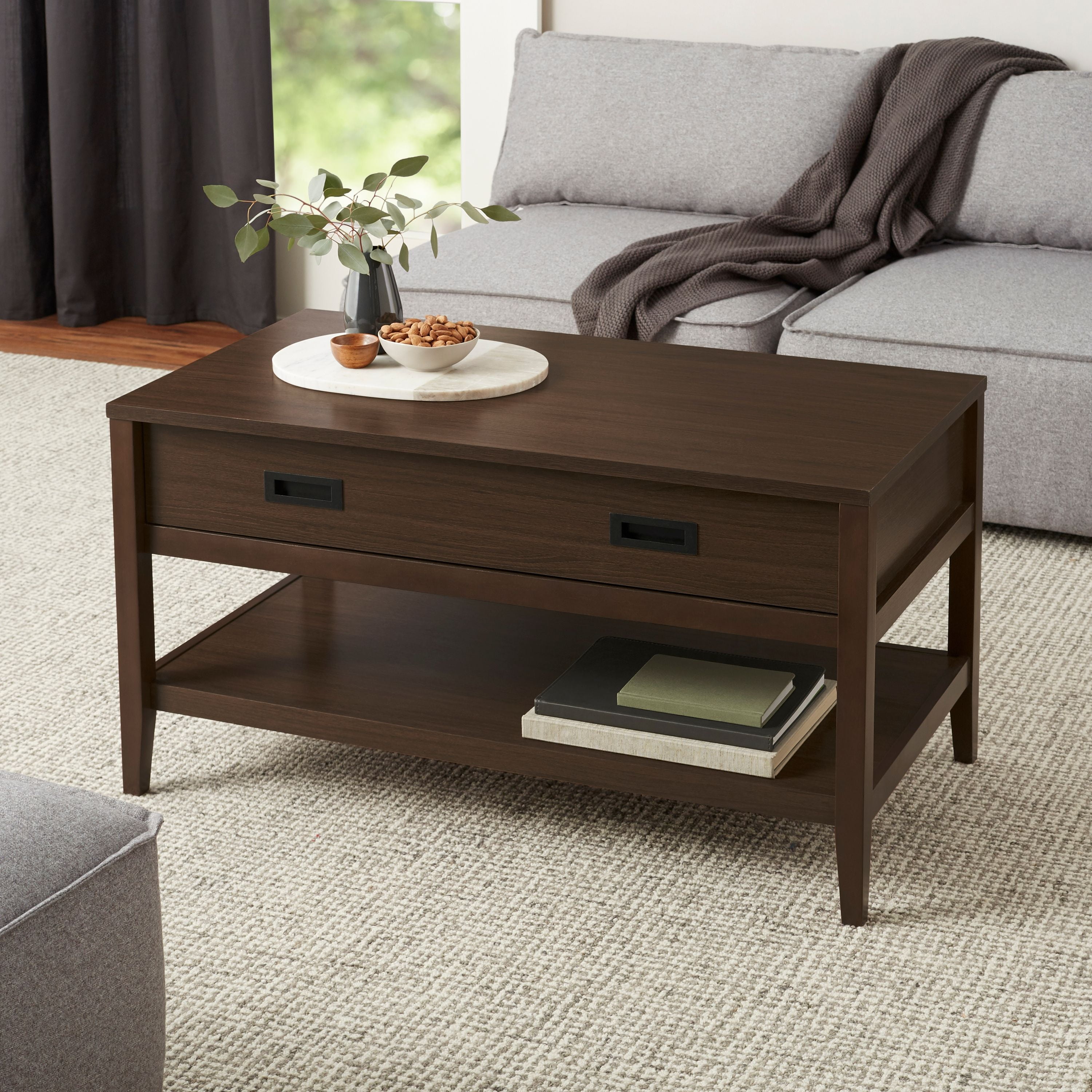 Better homes & gardens modern farmhouse lift top coffee table, rustic white finish: Find out what to plant in a terrarium. Finished in rustic white and detailed with attractive hardware, this coffee table is sure to stand out in your home. Get more from better homes and gardens. Usually ships within 6 to 10 days. The large lower shelf provides a convenient space for storing and displaying accessories. The large top contains plenty of room for pictures, reading material, and, of course, coffee cups. Crafted from sturdy engineered wood, this rustic coffee table also features interior storage space that can be conveniently accessed by its sliding top. That's two tables for the price of one! Add rustic charm to your living room with the better homes and gardens bryant coffee table. Better homes gardens meadow lake rectangular patio wicker coffee table com ravenbrooke 4 piece furniture conversation set with swivel chairs get the belfair square outdoor from now accuweather customer favorite adley river kennedy pointe dining 70 x 39 fxdealsmall hawthorne park 4pc sofa beige cushions acadia round this highly rated is 5k less than pottery barn sets are… read more » Better homes & gardens steele end table with drawer, espresso finish walmart usa. This coffee table is finished on all sides for versatile placement throughout your home.