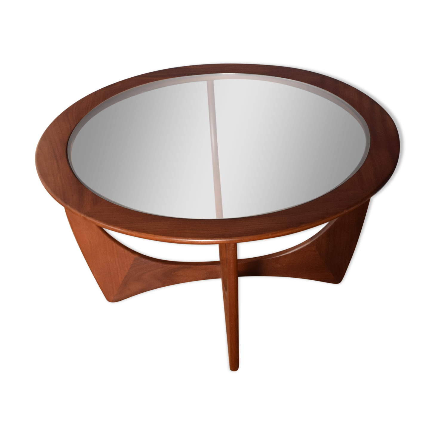 Danish mid century modern spider leg teak coffee table glass top.